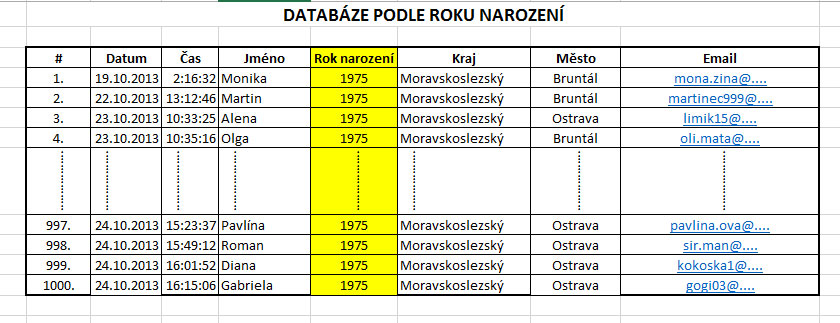 Ukázka - databáze podle roku narození /tvoříme podle času Vaší registrace/